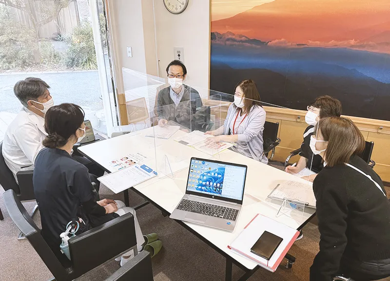 医師が参加する定期カンファレンスで、介護施設との連携を強化。